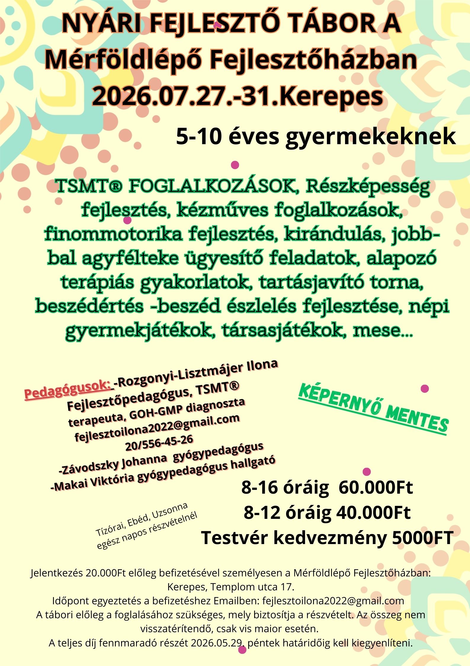 A fejlesztőházban elsősorban idegrendszer fejlesztéssel foglalkozunk 3 hónapos kortól 16 éves korig, de emellett számos más foglalkozásaink is vannak.